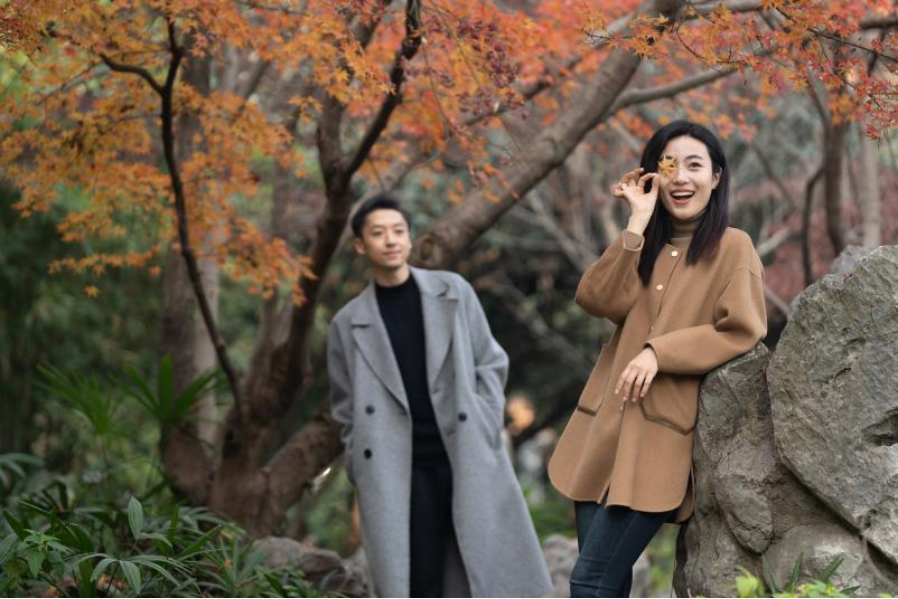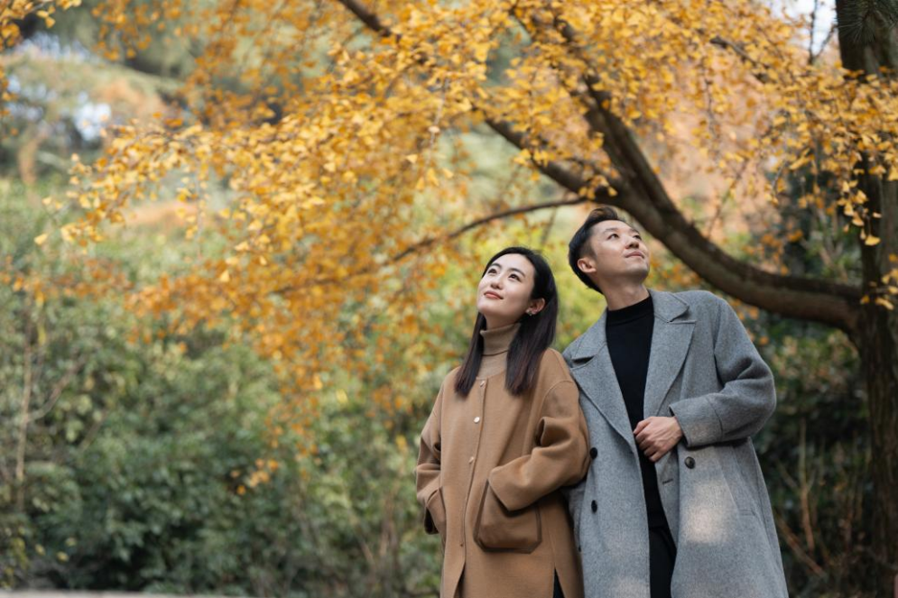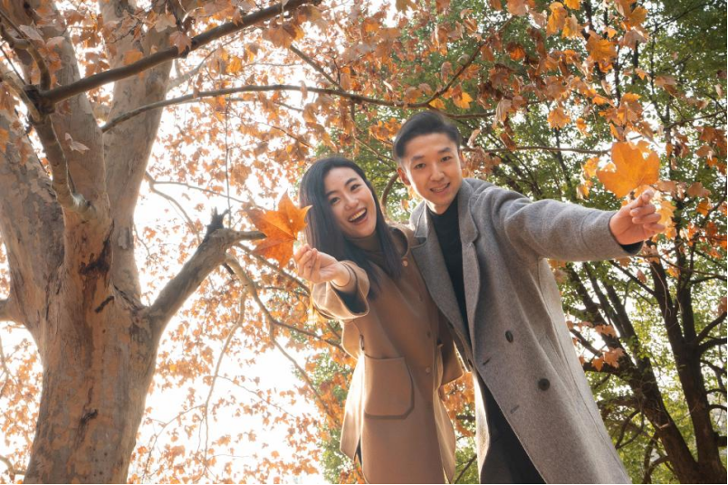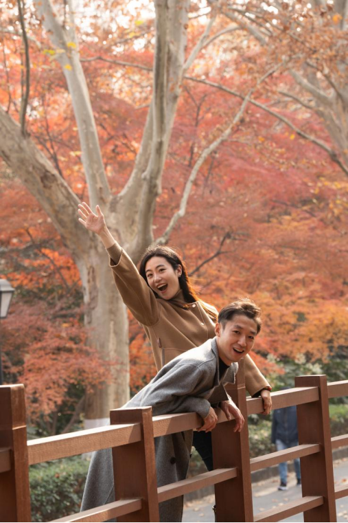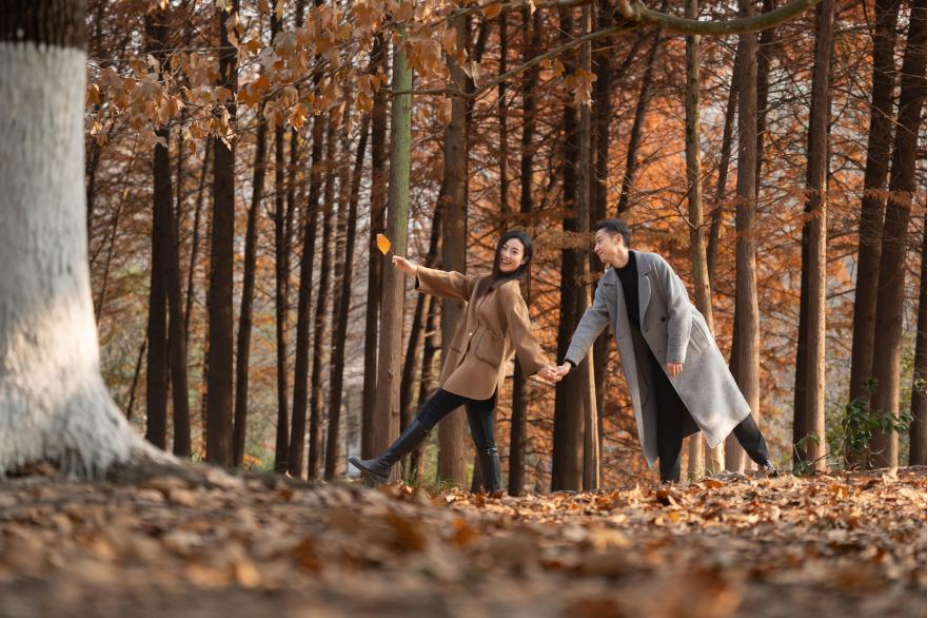 逆光拍攝時,葉片的脈絡在光下透亮如蟬翼,人物漫步其中,衣角與落葉一同翻飛,輕松拍出電影感滿滿的冬日氛圍感大片!