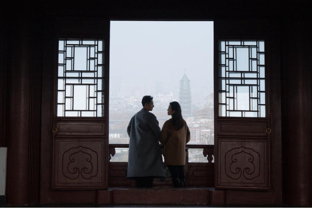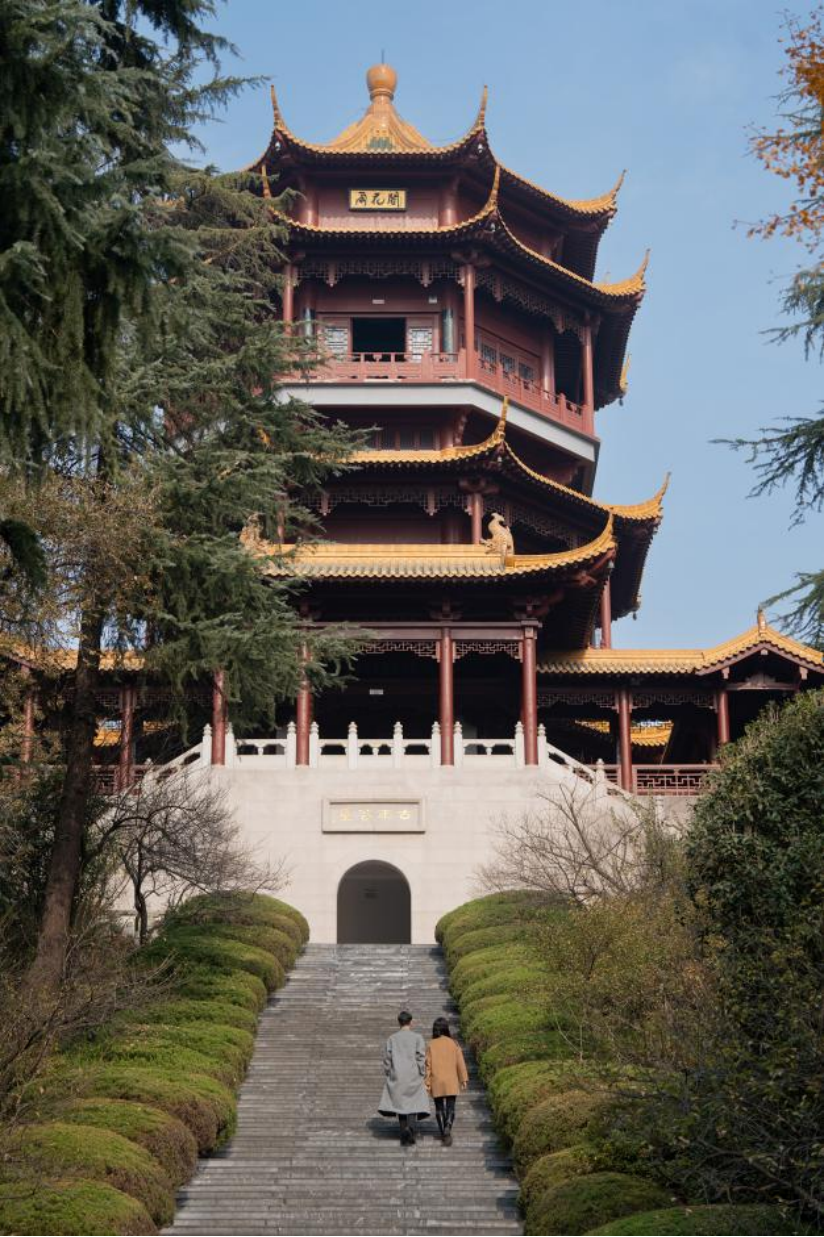 站在閣樓下仰拍,金色的飛檐和湛藍天空碰撞出歷史厚重感;登頂后轉身,金陵城廓作為背景,側影秒變古風故事感大片!