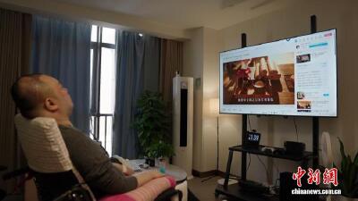▲癱瘓患者通過意念操控智能輪椅。 圖源/活動方供圖