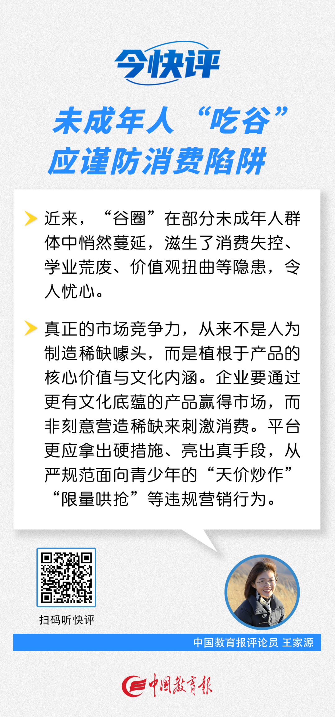 本文來源|《中國教育報》2025年12月19日01版,原標(biāo)題《未成年人“吃谷”應(yīng)謹(jǐn)防消費(fèi)陷阱》