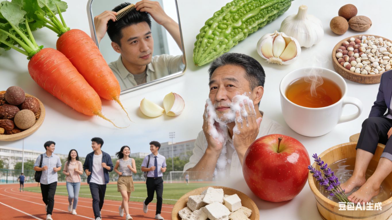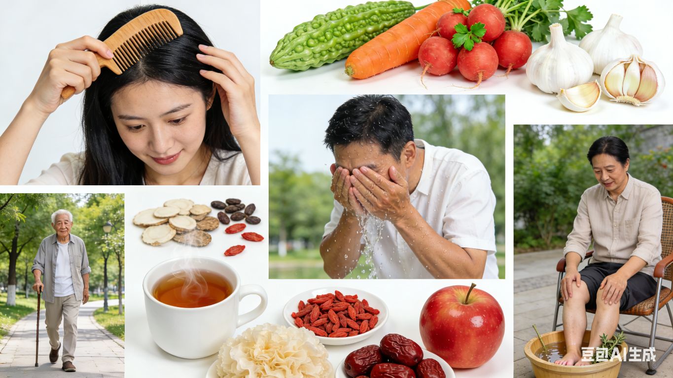 頭腦清醒駐容顏。洗洗鼻,揉揉眼,遠離感冒和花眼。齒常叩,舌常轉,生津開胃齒固堅。保健穴,常按摩,健身祛病好處多。大步走,小步跑,一天萬步比較好。循漸進,持之恒,常年堅持必然靈。戒吸煙,限喝酒,心胸開闊不發愁。?