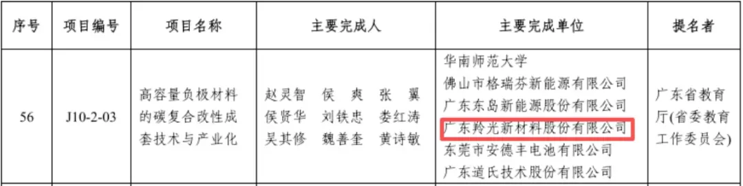 近日,廣東省人民政府發(fā)布2024年度廣東省科學(xué)技術(shù)獎(jiǎng)獲獎(jiǎng)名單,廣東羚光新材料股份有限公司(以下簡(jiǎn)稱“廣東羚光公司”)參與的“高容量負(fù)極材料的碳復(fù)合改性成套技術(shù)與產(chǎn)業(yè)化”項(xiàng)目榮獲科技進(jìn)步獎(jiǎng)二等獎(jiǎng)。該獎(jiǎng)項(xiàng)主要授予給為促進(jìn)科技進(jìn)步和經(jīng)濟(jì)社會(huì)發(fā)展作出突出貢獻(xiàn)的個(gè)人或組織,屬?gòu)V東省在科技成果獎(jiǎng)勵(lì)方面的最高榮譽(yù),代表廣東科技創(chuàng)新的頂尖水平。該獲獎(jiǎng)項(xiàng)目突破鋰離子電池關(guān)鍵材料技術(shù)瓶頸,對(duì)推動(dòng)新能源產(chǎn)業(yè)發(fā)展具有重要意義。