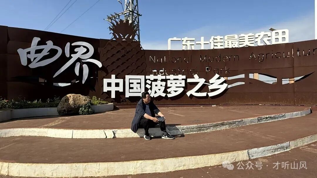 我驅車深入曲界鎮,這片被《中國地理》雜志譽為“最壯美風光帶”的核心。道路兩旁的田園一年四季色彩斑斕,與散落其間的村莊、巨大的白色風力發電機共同構成了一幅獨具魅力的熱帶生態農業景觀。我特意繞道去了愚公樓村——這個廣東最早引種菠蘿的村莊,被譽為“菠蘿種植第一村”。1926年,華僑倪國良先生正是從這里,將第一株“巴厘”菠蘿苗種下,才有了今日的波瀾壯闊。村里的老人說,這里的紅土地是火山巖風化而成,富含礦物質,種出的菠蘿格外香甜。我想,這土地何嘗不是一種象征?它以其深厚的底蘊,滋養了萬物,也接納了當年我們這群來自五湖四海的年輕人,讓我們的青春在此扎根、結果。