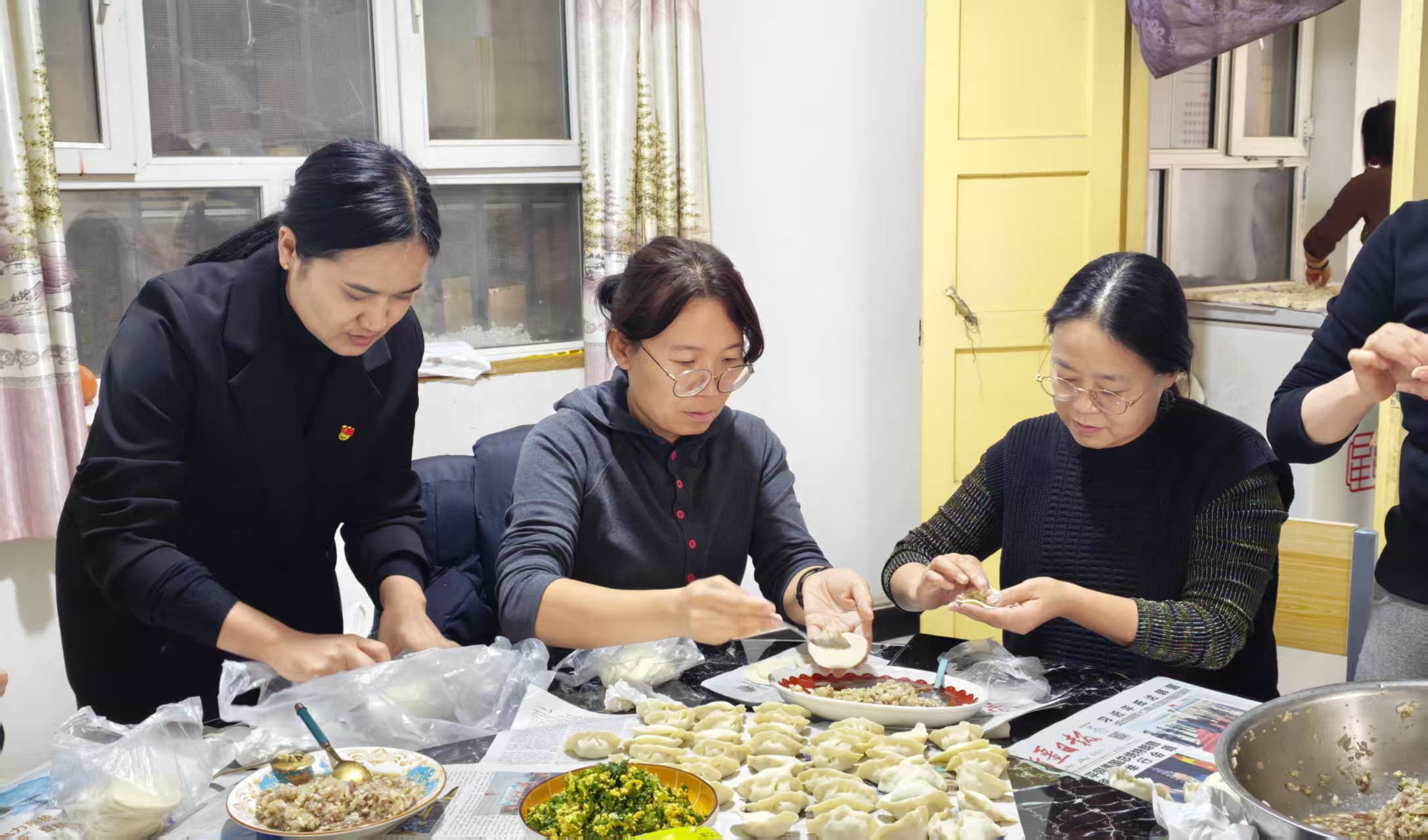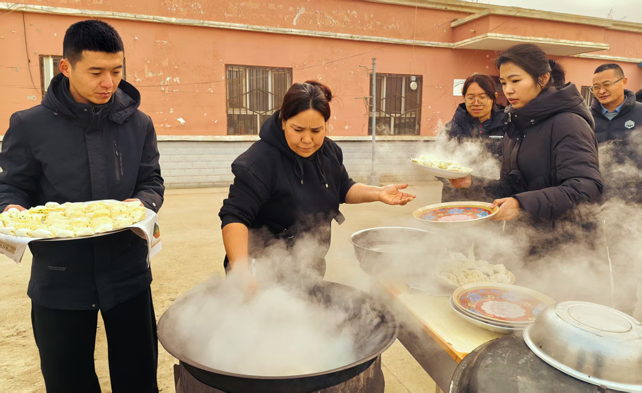 洗菜、切菜、拌餡、填餡、捏合……政策宣講與民俗實踐無縫銜接,活動現場一派熱火朝天。干部職工與村民代表圍坐在一起分工協作,不一會兒,一個個飽滿的餃子便擺滿托盤。大家話家常、聊變化,熱議四中全會精神帶來的發展機遇,暢談人社惠民政策帶來的好日子,從穩崗返還讓企業安心發展,到技能補貼讓個人增收致富,再到鄉村振興的美好藍圖,歡聲笑語中拉近了黨群干群距離,增進了干群情誼。