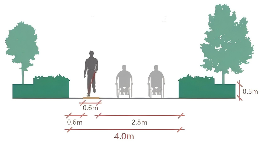 場地內部,2.8米寬的輪椅通道與盲道互不干擾,人車分流的設計提升通行安全性。