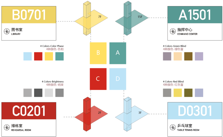 四種主題色彩的標識系統,適配不同色覺人群