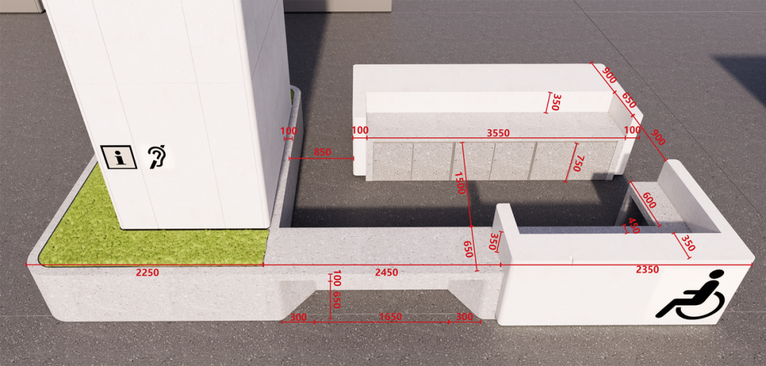 大廳內設高低位服務臺(單位:毫米)