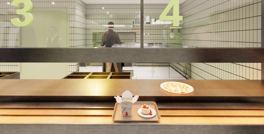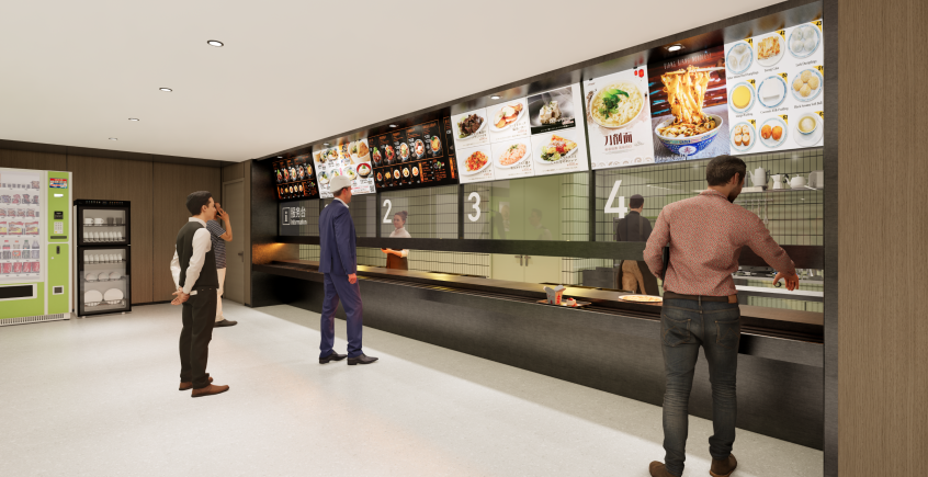 通過貼合多元使用需求的功能設計,項目將無障礙理念融入全場景,實現高頻日常與專項需求的精準覆蓋。在餐廳區域,取餐臺設有可供餐盤滑動的凹軌及充足容膝空間,配備可調節高度且加寬擺放的餐桌,就近布置直飲水點與販賣機,提升用餐便捷性。