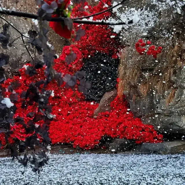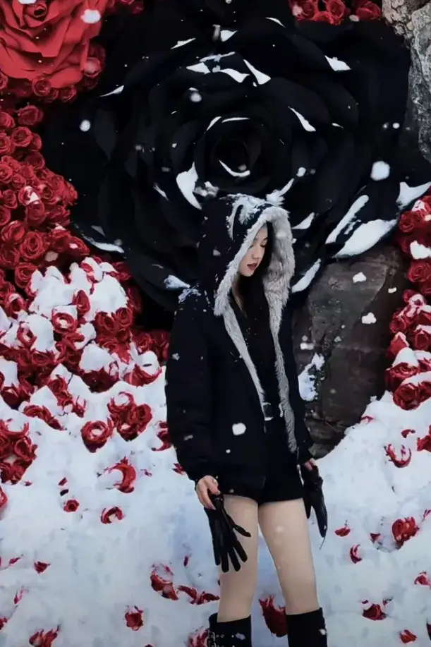 別再說冬天的風景單調又乏味!關山景區早已換上了冬日限定盛裝,熱烈的紅玫瑰與冷艷的黑玫瑰碰撞,從崖壁傾瀉而下。站在玫瑰瀑布前打卡,無論是遠景拍全身照或是特寫鏡頭聚焦于指尖觸碰玫瑰花瓣的畫面,都能輕松拍出高級感大片。