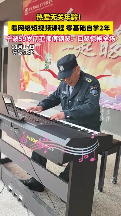 12月17日中午,寧波市江北區(qū)育才實(shí)驗(yàn)學(xué)校的午間器樂展演現(xiàn)場(chǎng),一個(gè)意外節(jié)目引爆了全場(chǎng)氣氛。59歲的校園保安樂常青師傅自信登臺(tái),雙手輕觸琴鍵,流暢的旋律隨即響起,他先彈奏了《克羅地亞狂想曲》《秋日私語》兩首鋼琴曲,又換上一把口琴,吹起了經(jīng)典民歌《月亮之歌》《萱草花》。