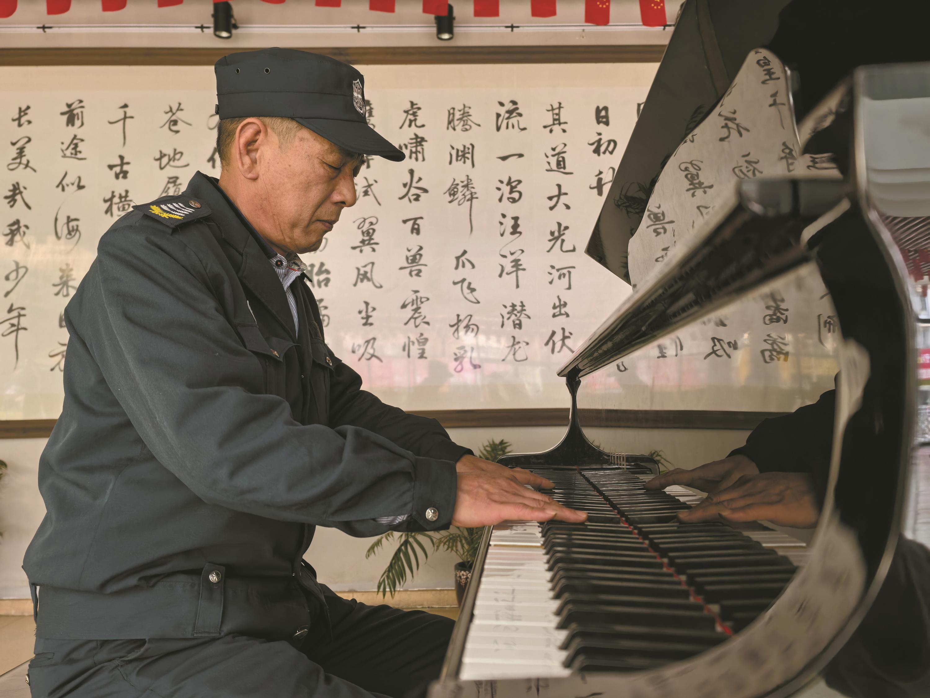 “有一次放學(xué)后,我聽到鋼琴聲傳來,還在奇怪學(xué)生們都走了是誰在彈呢。”一位值班老師回憶道,走過去一看,原來是樂師傅坐在那里,專注地彈著琴。老師們也漸漸注意到,偶爾會(huì)從門衛(wèi)室傳來清脆的口琴聲。就這樣,樂師傅的音樂才華慢慢在學(xué)校傳開,所以這次被邀請(qǐng)登上校園藝術(shù)節(jié)的正式舞臺(tái)。