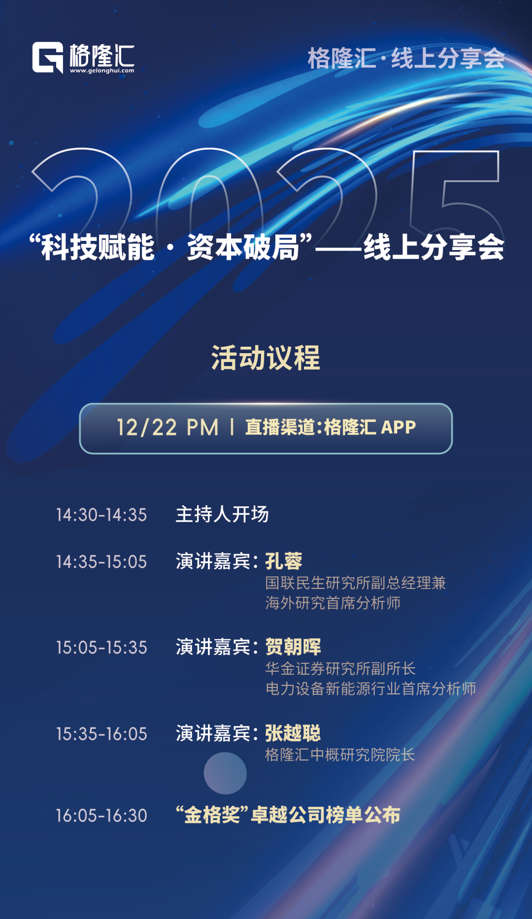 值此歷史性轉(zhuǎn)折期,格隆匯將于2025年12月22日星期一下午舉辦【“科技賦能·資本破局”——線上分享會(huì)】。