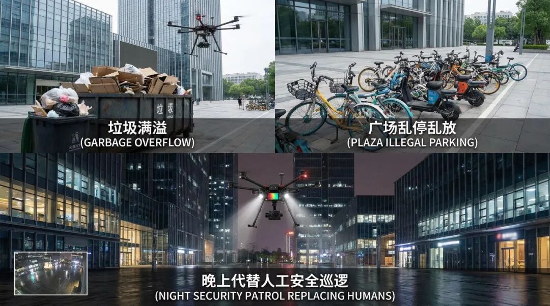 11月,興業(yè)物聯(lián)率先進行低空經濟的探索,將無人機引入商寫樓宇服務體系,并著手接洽至AI物業(yè)大模型,逐步布局以服務+技術+場景構建"空-地-人"一體化智能管理模式
