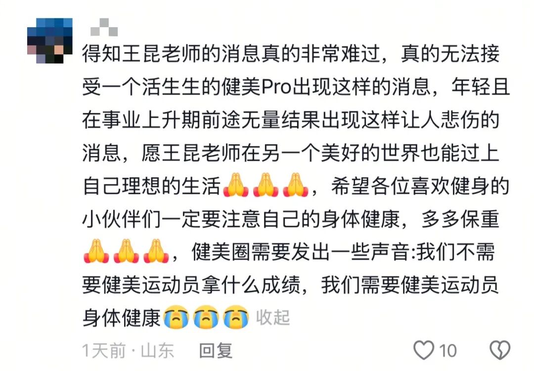 王昆去世消息證實后,很多和他有一面之緣的朋友到他社交賬號紛紛留言。(來源:“王昆IFBB PRO”抖音號)