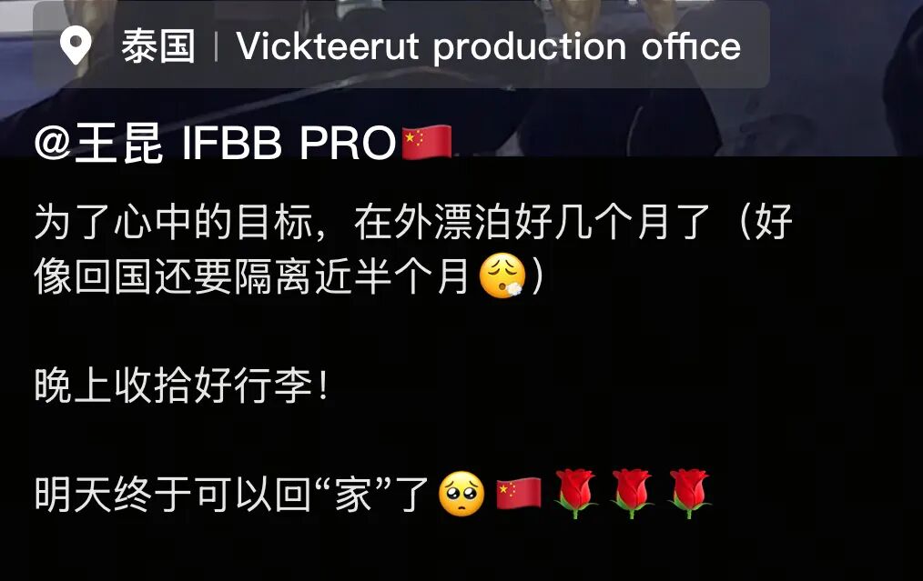 王昆在自己社交賬號置頂了泰國得獎的視頻
