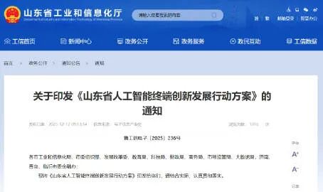 近日,《山東省人工智能終端創(chuàng)新發(fā)展行動方案》發(fā)布。到2027年,山東省人工智能終端產(chǎn)業(yè)核心競爭力明顯增強,產(chǎn)業(yè)規(guī)模超過4500億元,重點產(chǎn)品產(chǎn)量超過1億臺,培育10家左右競爭力處于國內(nèi)領(lǐng)先水平的龍頭企業(yè)、單項冠軍企業(yè)、專精特新“小巨人”企業(yè),形成首件套電子產(chǎn)品、首臺套裝備等創(chuàng)新產(chǎn)品100項以上,建設(shè)全國一流的人工智能終端產(chǎn)業(yè)集聚區(qū)、融合應(yīng)用新高地。