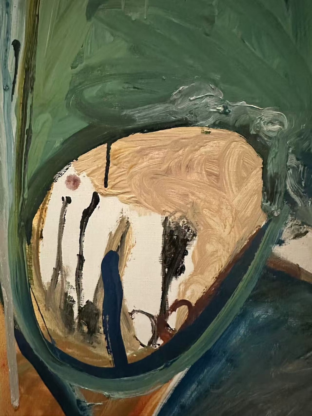《坐著的老年男人》(手部局部),能看到藝術家創作的痕跡