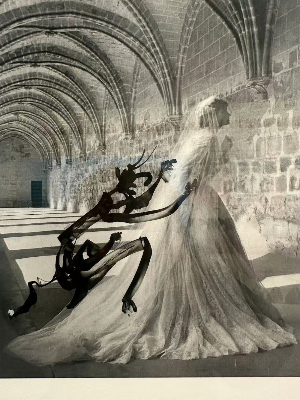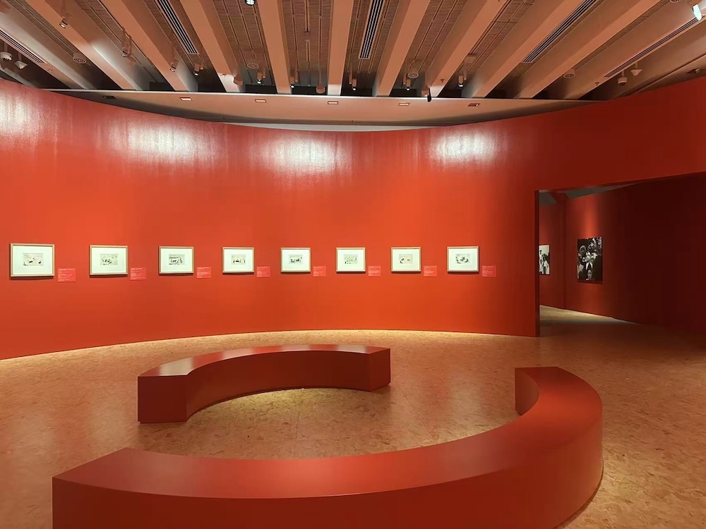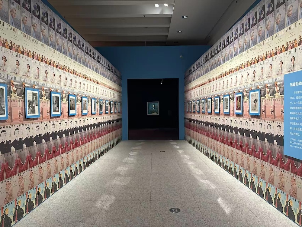 轉而,一條通道中,畢加索在雜志時尚版面上隨手畫下小幅漫畫和速寫,用自己的筆觸“補充”或“改寫”原本的時尚圖像(如給雜志封面的模特添上了一頂帽子、在穿著婚紗的女性身后畫一些小怪物),讓人想到自己的少年時代,也曾在課本上這樣畫著。