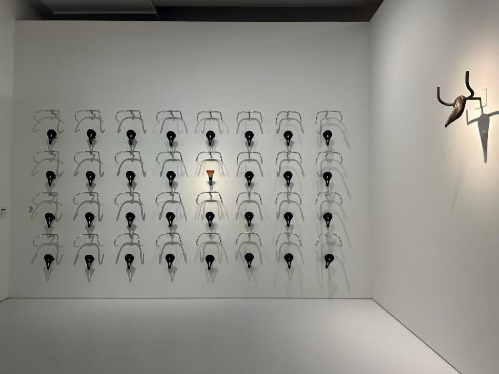 展覽一開始,就出乎大部分人的意料,一件由自行車鞍座和把手焊接而成的《牛頭》,與一墻當代鞍座和把手呼應。