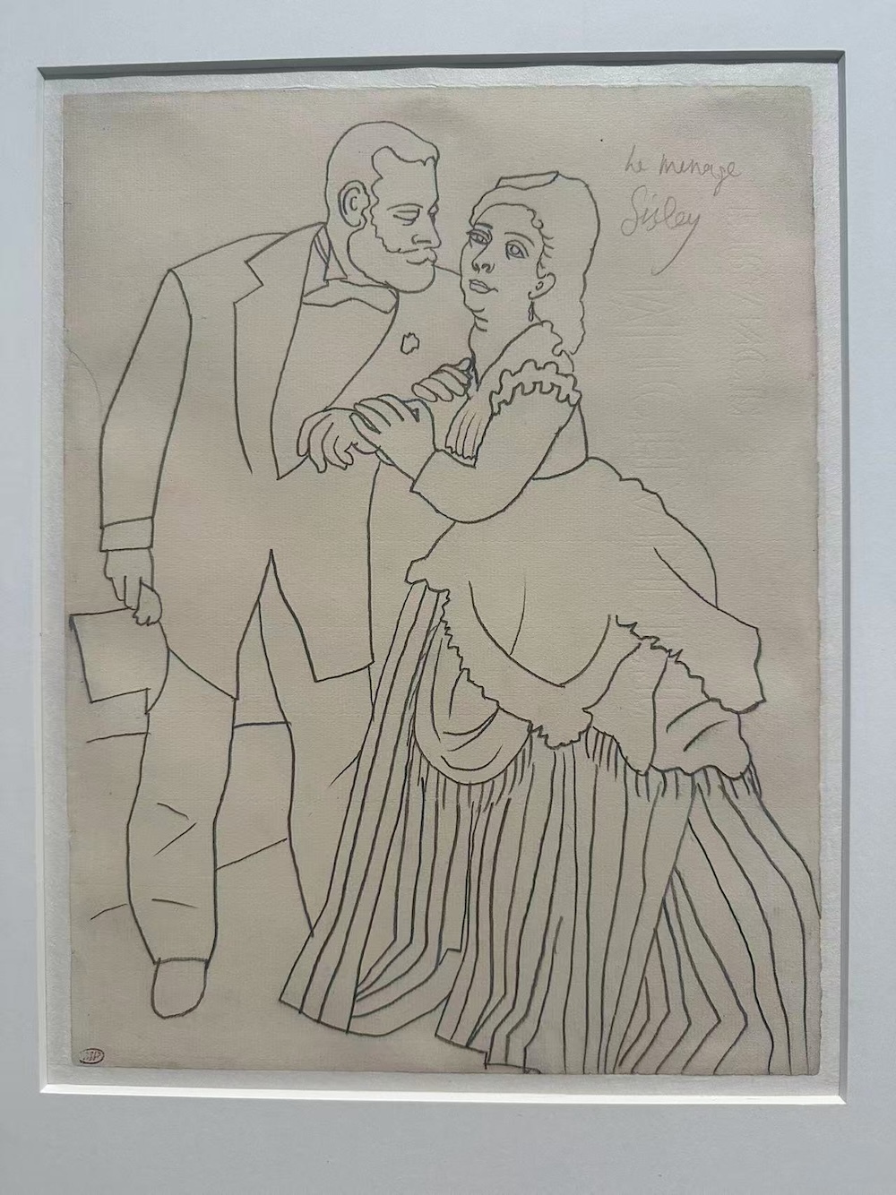 展覽現場,畢加索1919年鉛筆作品《致敬奧古斯特·雷諾阿》