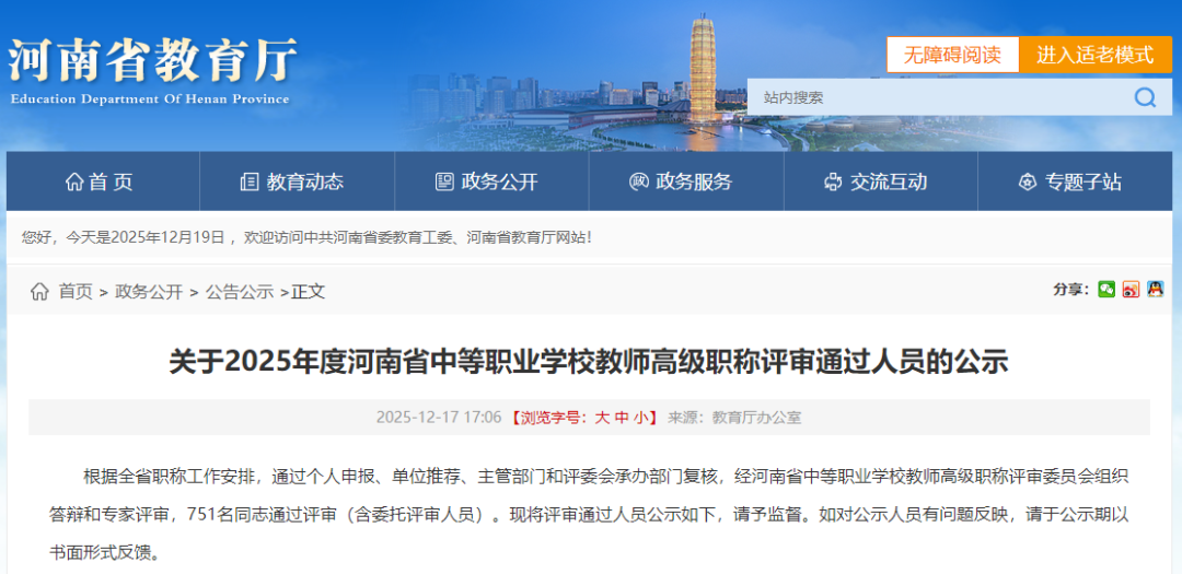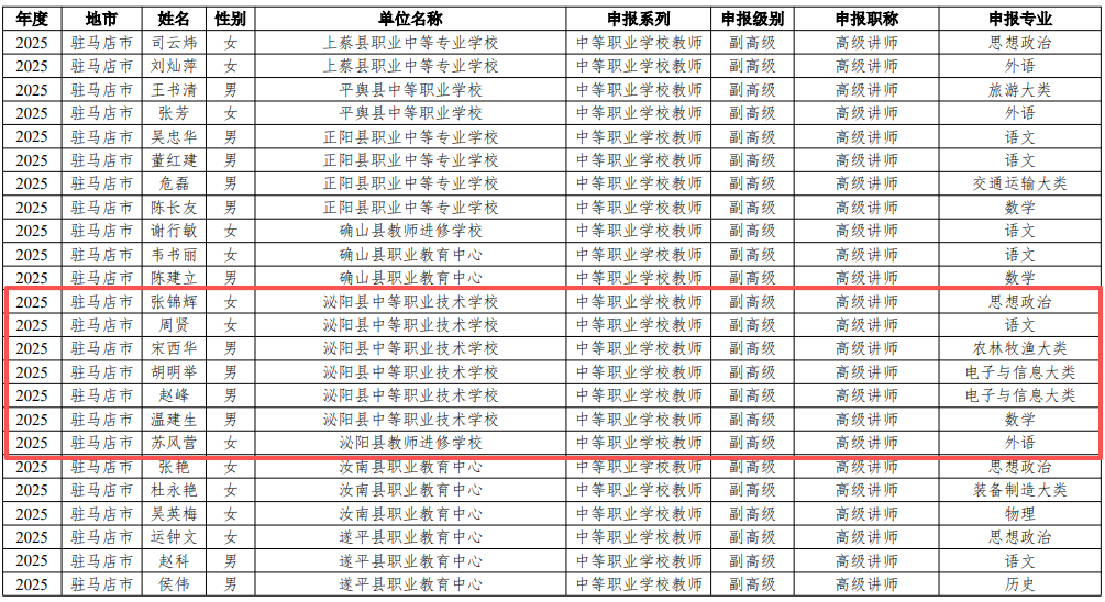 近日,河南省教育廳發布關于2025年度河南省中等職業學校教師高級職稱評審通過人員的公示,泌陽7名教師評審通過!