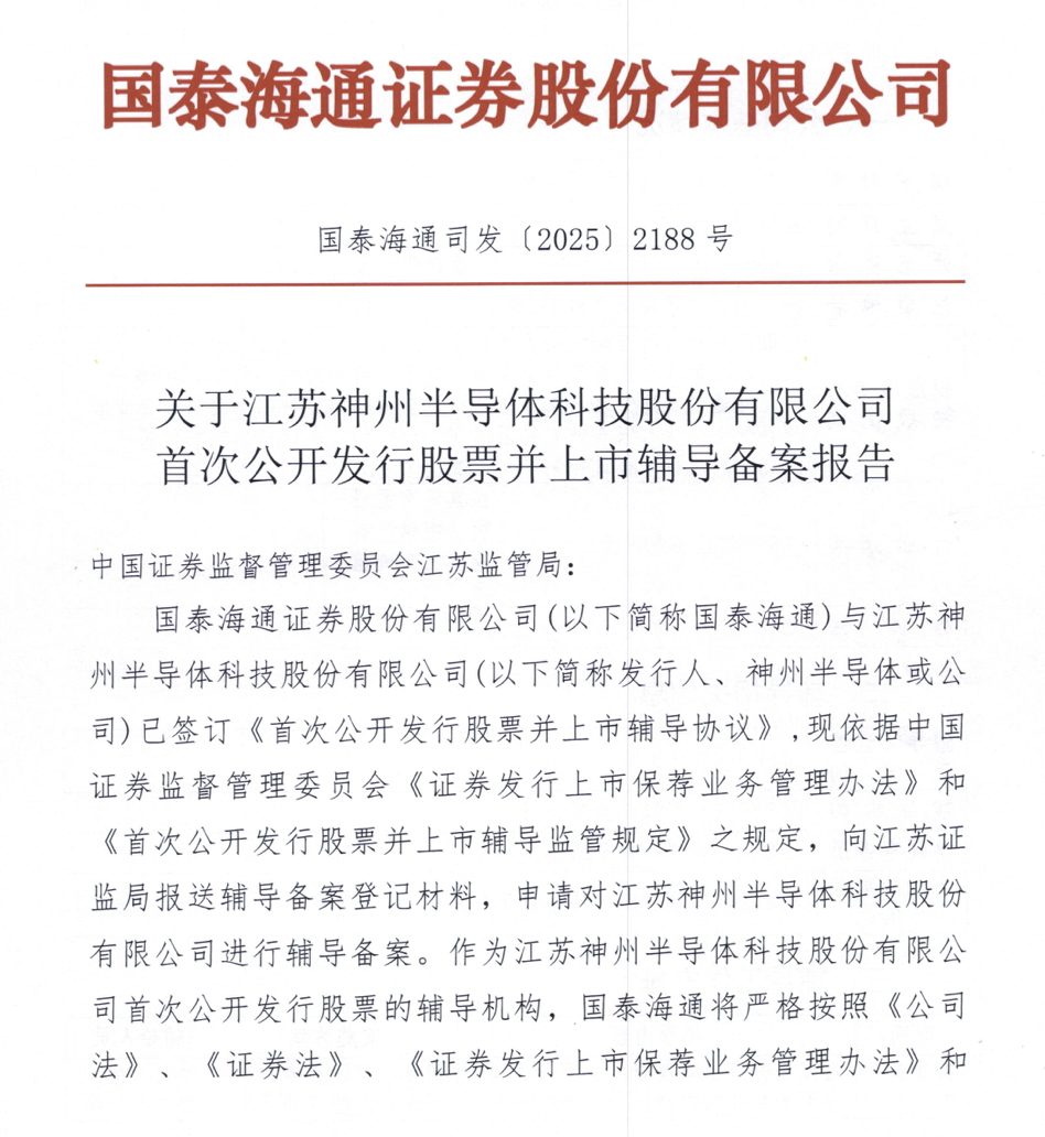瑞財經 吳文婷 近日,江蘇神州半導體科技股份有限公司(以下簡稱“神州半導體”)啟動IPO。