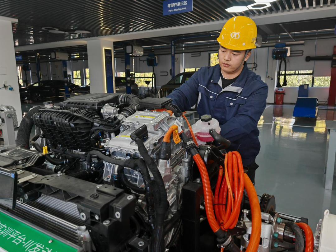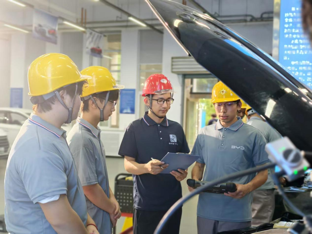 為支撐新能源汽車產(chǎn)業(yè)崛起,河南省全省高職院校開設(shè)相關(guān)專業(yè)點(diǎn)419個,相關(guān)在校生22.14萬人。在河南機(jī)電職業(yè)學(xué)院與比亞迪共建的現(xiàn)場工程師學(xué)院,圍繞“現(xiàn)場工程師”培養(yǎng)開發(fā)了37門項(xiàng)目化課程。該校每年向鄭州航空港區(qū)比亞迪工廠輸送1000余名技能人才,不少學(xué)生迅速成長為產(chǎn)線骨干。“學(xué)校通過‘項(xiàng)目+人才’雙交付育人模式,極大地增強(qiáng)了人才培養(yǎng)與企業(yè)需求的匹配度。”比亞迪總裝車間主任如是說。