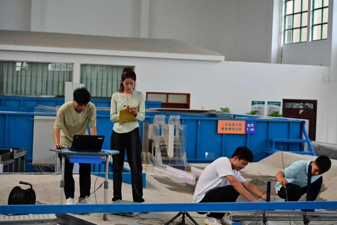 在黃河水利職業(yè)技術(shù)大學(xué),水利工程學(xué)院學(xué)生在做水庫模型試驗(yàn)