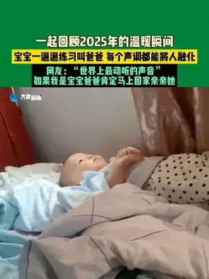一起回顧2025年的溫暖瞬間,寶寶一遍遍練習叫爸爸,每個聲調(diào)都能將人融化。網(wǎng)友:“世界上最動聽的聲音”,如果我是寶寶爸爸肯定馬上回家親親她。