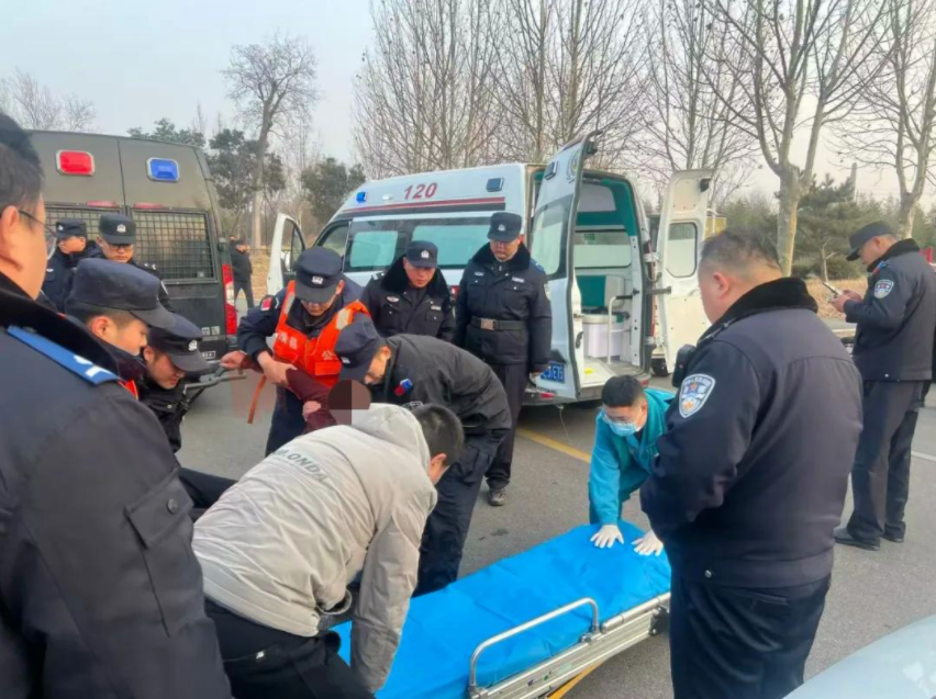 救援民警協同醫(yī)護人員小心將其抬上擔架
