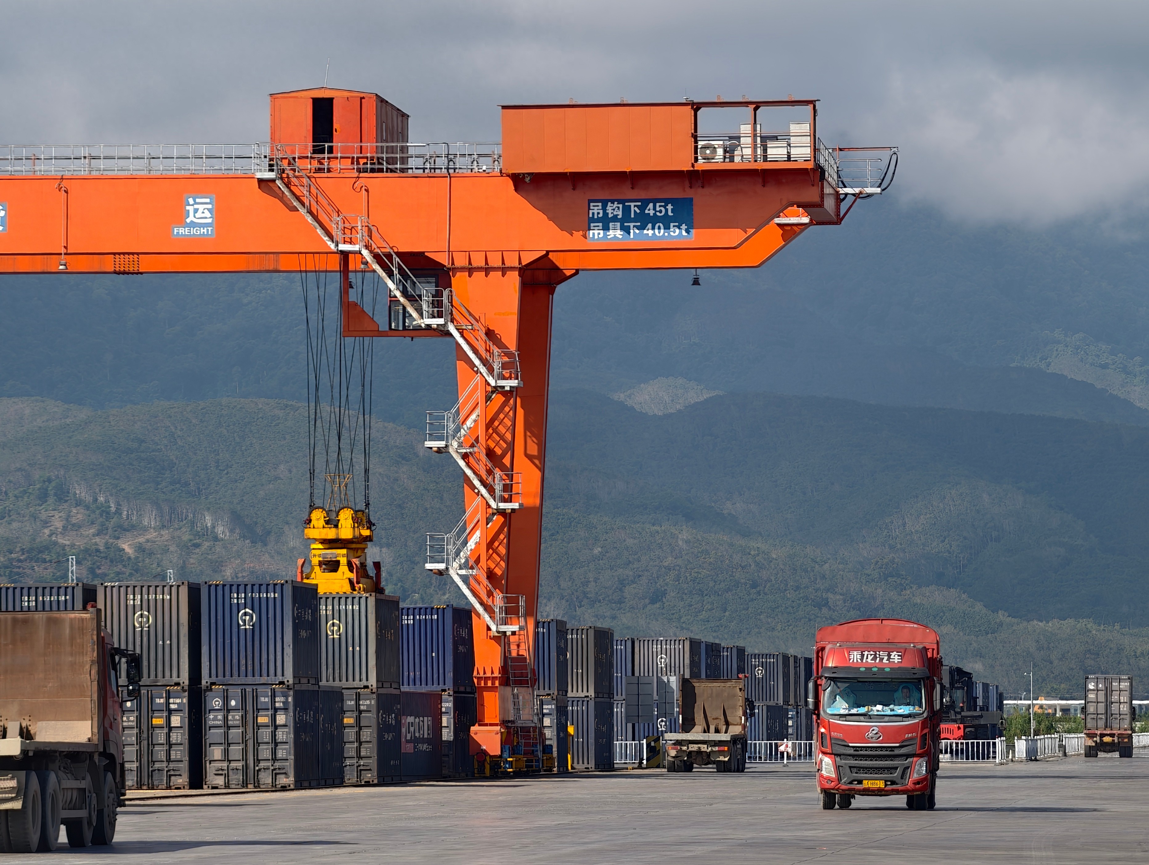 遠(yuǎn)處,熱帶雨林在晨霧中若隱若現(xiàn)。這里不僅是中老鐵路進(jìn)入西雙版納的第一站,更是國內(nèi)段貨運(yùn)量最大的車站,占全線貨運(yùn)量的三分之一左右。