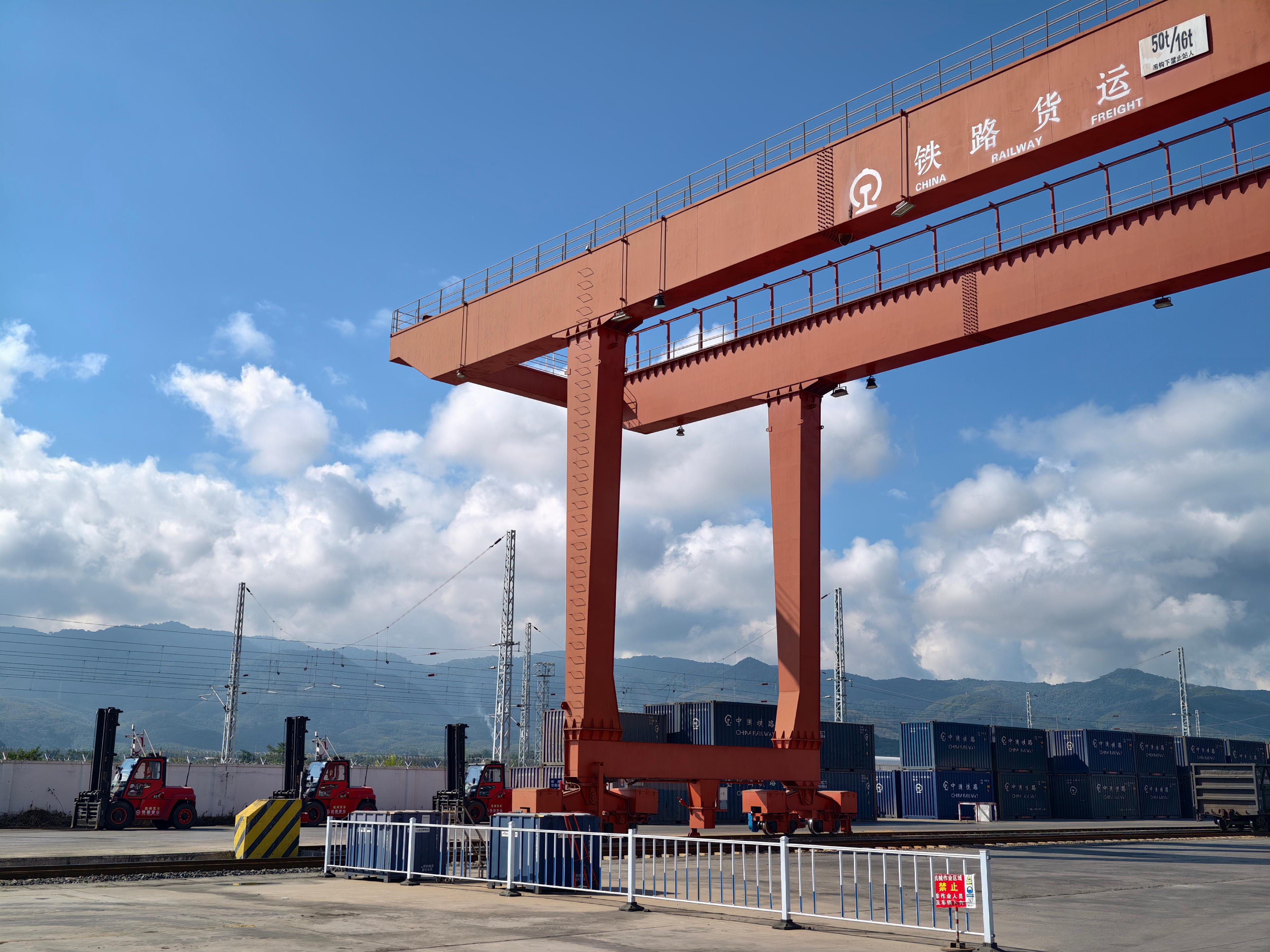 野象谷貨場正在進(jìn)行一場“蝶變”。昆明局集團(tuán)公司加快推進(jìn)貨運(yùn)場站轉(zhuǎn)型升級,擴(kuò)建集裝箱堆場2.8萬平方米,新增龍門吊和正面吊,并將貨場牽出線延長270米。