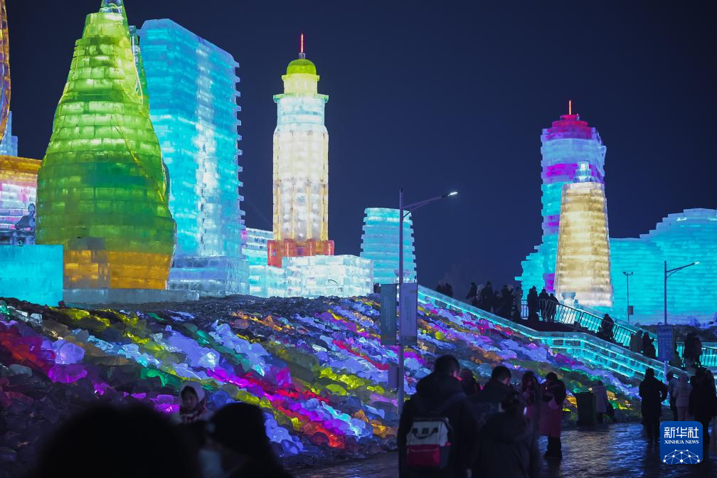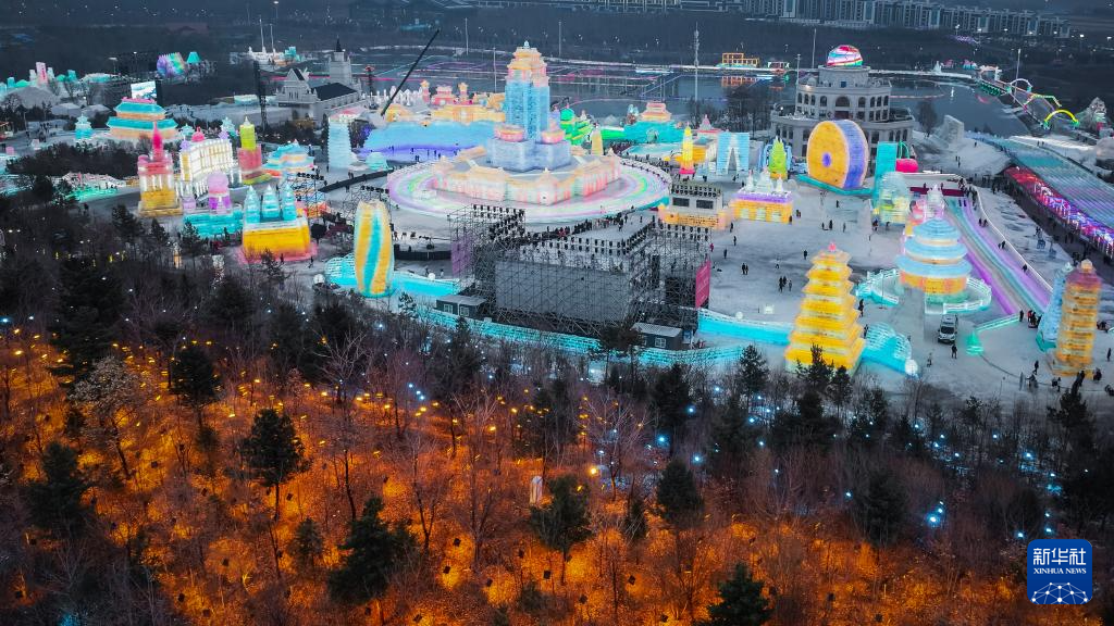 第七屆長春冰雪新天地于當(dāng)晚正式開園迎客。吉林省建設(shè)集團(tuán)相關(guān)負(fù)責(zé)人介紹,本屆園區(qū)以“冰雪福耀中華·民族大團(tuán)結(jié)”為主題,在占地156萬平方米的園區(qū)內(nèi),除巧奪天工的巨型冰雪雕塑群外,還打造了76萬平方米的冰雪游樂空間,配套建設(shè)60余條風(fēng)格各異的冰雪滑梯及30多種趣味游樂設(shè)施,為游客提供豐富多元的冰雪娛樂體驗(yàn)。