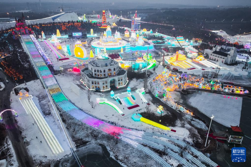 這是12月19日拍攝的長春市冰雪新天地景區(qū)(無人機(jī)照片)。 新華社發(fā)(張揚(yáng) 攝)