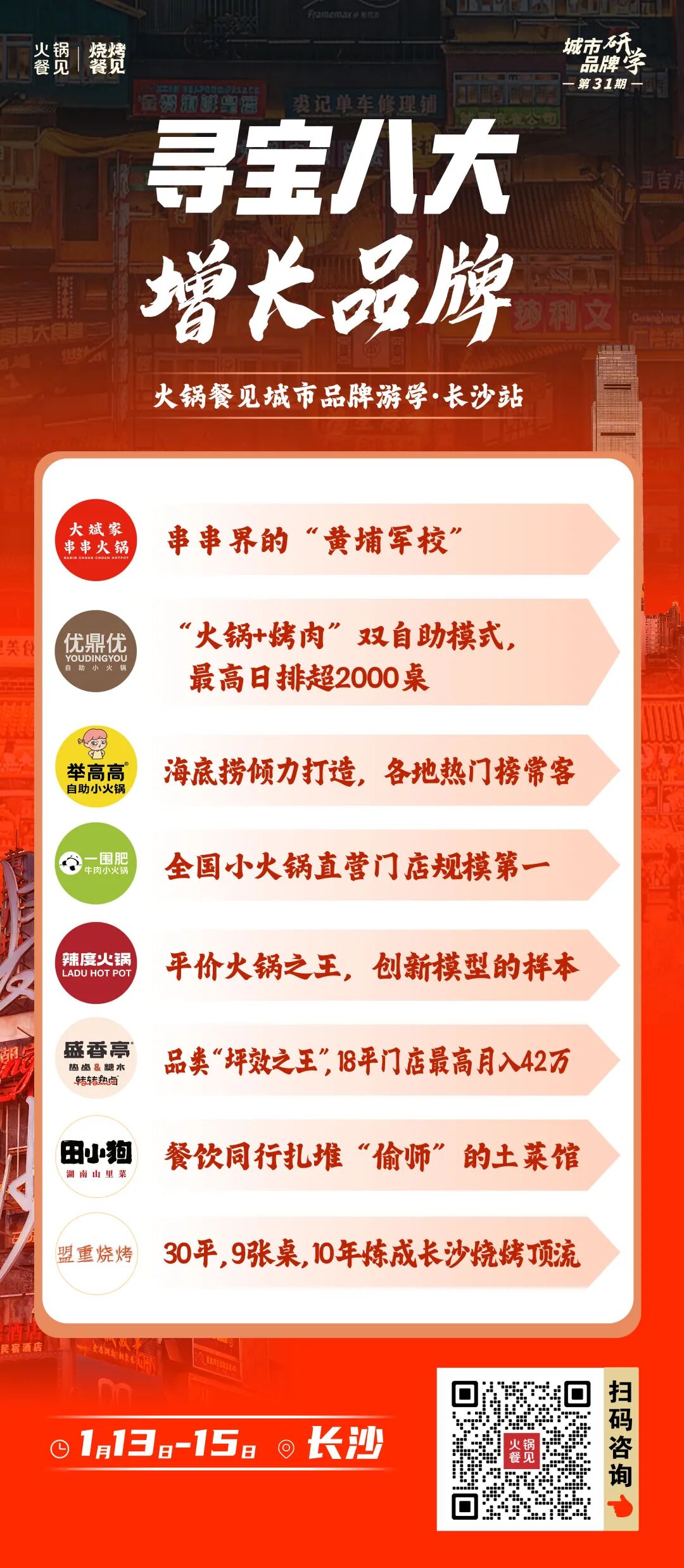 所以,2026年1月13~15日,我們一起去探訪長沙餐飲的進化軌跡,一起去感受這座城市煙火與變革的魅力。