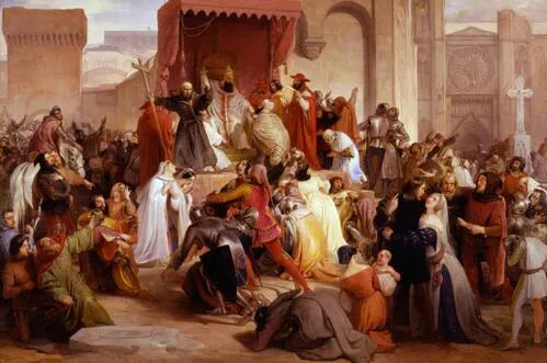 而教皇在強大的時候,也可以號令天下,把國王開除教籍,組織十字軍討伐異端,法國國王和德國國王都曾經在教皇面前下過趴蛋,祈求他的寬恕,德國的亨利四世,甚至在雪地里跪了三天三夜,才換取了格里高利七世的原諒,法國南部的阿爾比派,因為挑戰了教會的權威,最后被教皇英諾森三世組織的十字軍,殺得干干凈凈。