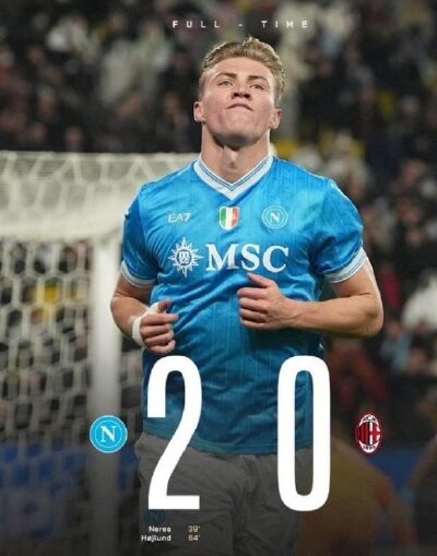此后AC米蘭雖全力反撲,甚至換上多名進攻球員加強攻勢,但那不勒斯通過積極的防守反擊和控球戰術,成功消耗比賽時間。最終全場比賽結束,那不勒斯以2-0的比分擊敗AC米蘭,順利晉級意大利超級杯決賽,距離賽事冠軍僅一步之遙。