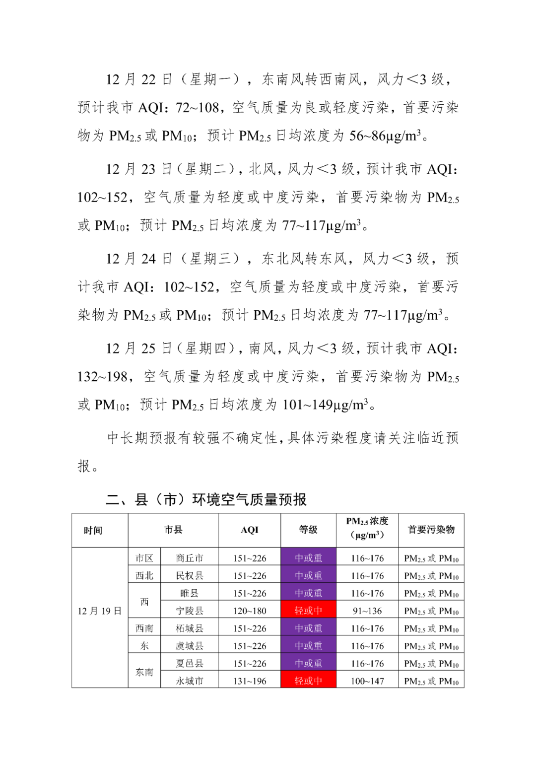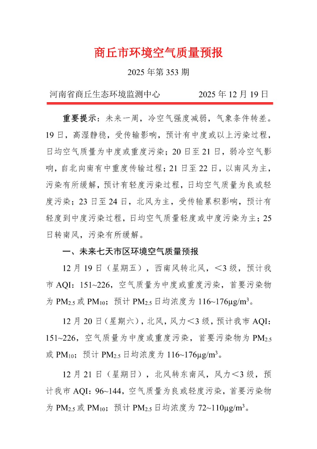 【商丘空氣質量預報】2025年12月19日商丘預報結果
