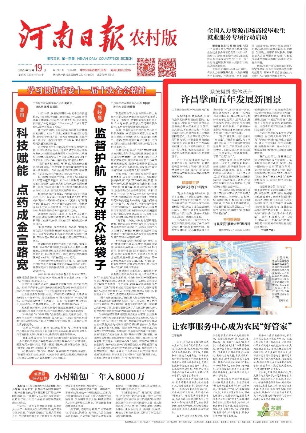 河南日報農村版頭版聚焦許昌丨“十五五”規劃擘畫新藍圖