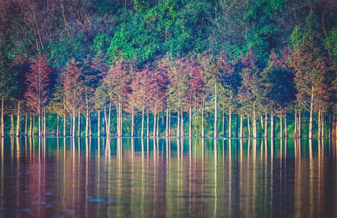 樹林深幽,野鹿時隱時現。正午靜寂,未聽到鐘聲。