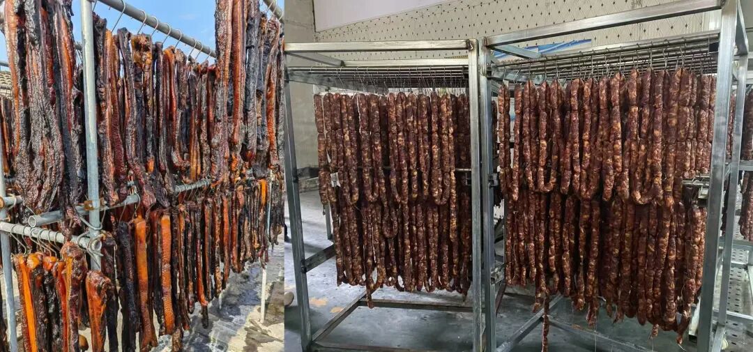 晾曬過程中需定時翻動,確保表面干燥均勻,避免霉變,這一步驟既去除了肉品中的多余水汽,又為后續(xù)熏制打下基礎,讓臘味本香更濃郁。