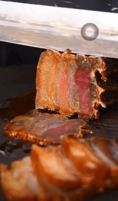 淡淡的草木熏香裹挾著濃郁的脂香,一口咬下,鮮美的肉香即刻充盈口腔,每一處齒縫都被醇厚風味填滿,口感層次十足根本停不下來!