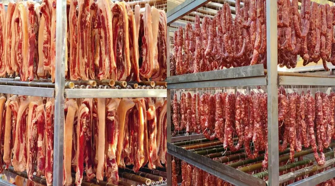 腌制完成后,臘肉與香腸需懸掛于通風向陽的高處,進行 2-3 天的自然晾曬。