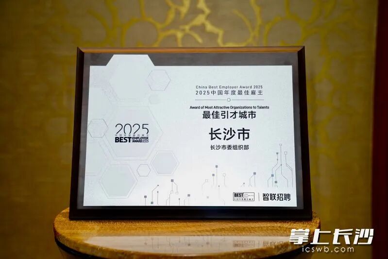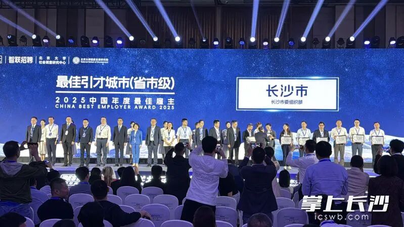 12月19日,海南三亞,2025中國年度最佳雇主頒獎盛典公布評選結果,長沙從眾多城市中脫穎而出,榮膺“中國年度最佳引才城市”。