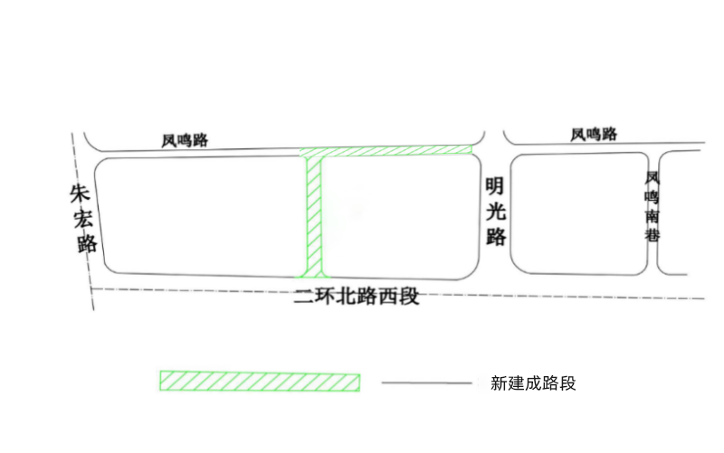 鳳鳴路(西段):這是一條東西向支路,西起明光路西側(cè)規(guī)劃路,東至明光路,有效連接起北二環(huán)與鳳城一路區(qū)域。