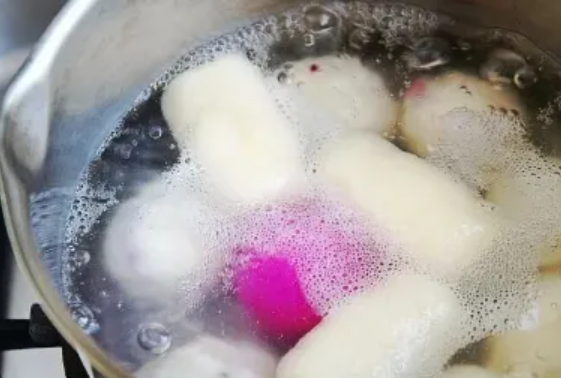 煮湯圓:鍋中水開,下入湯圓,大火煮開,澆冷水,再次煮開,視湯圓的大小可以澆2~3次冷水,煮至湯圓飄起來關火,出鍋裝盤。