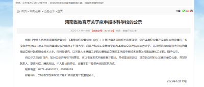 河南省教育廳關于擬申報本科學校的公示