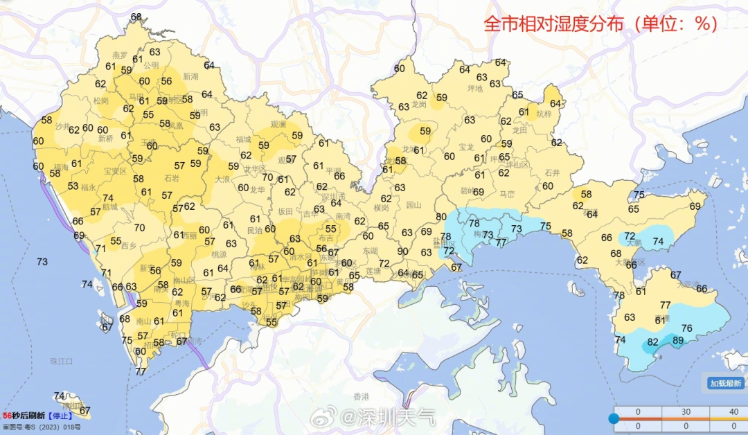 12月19日15時全市相對濕度分布。圖源:深圳天氣