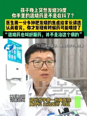 12月16日,河南鄭州,孩子晚上突然發(fā)燒39度,你手里的退燒藥是不是在抖了?醫(yī)生用一分多鐘把發(fā)燒的焦慮給家長(zhǎng)講透,認(rèn)真看完,你才發(fā)現(xiàn)有時(shí)候藥可能喂錯(cuò)了,“退燒藥也叫舒服藥,并不是治這個(gè)病的”