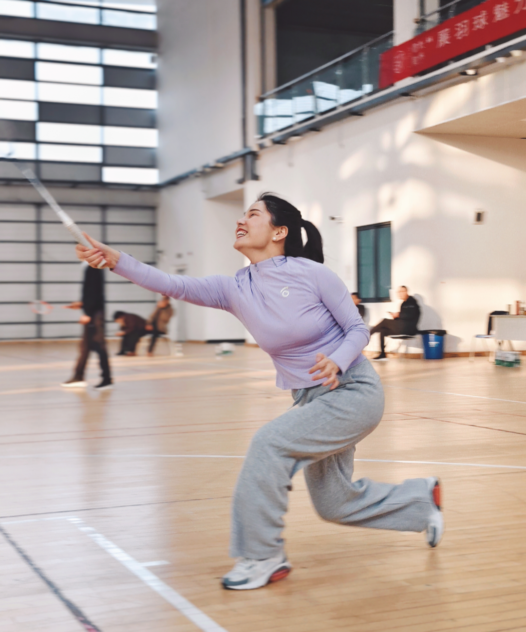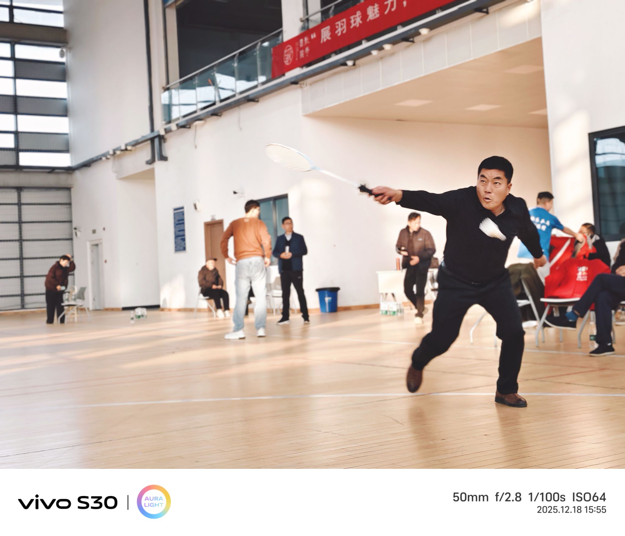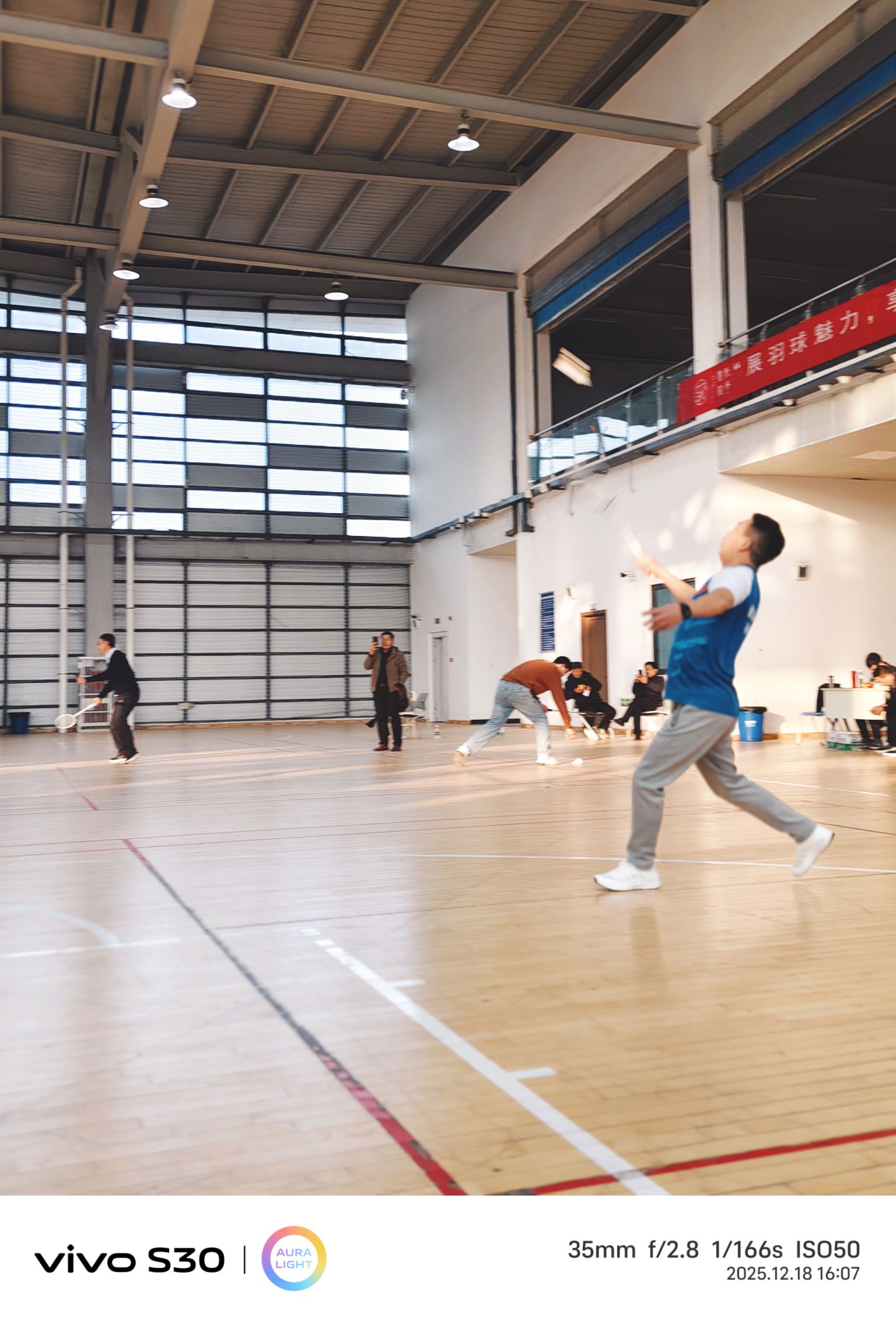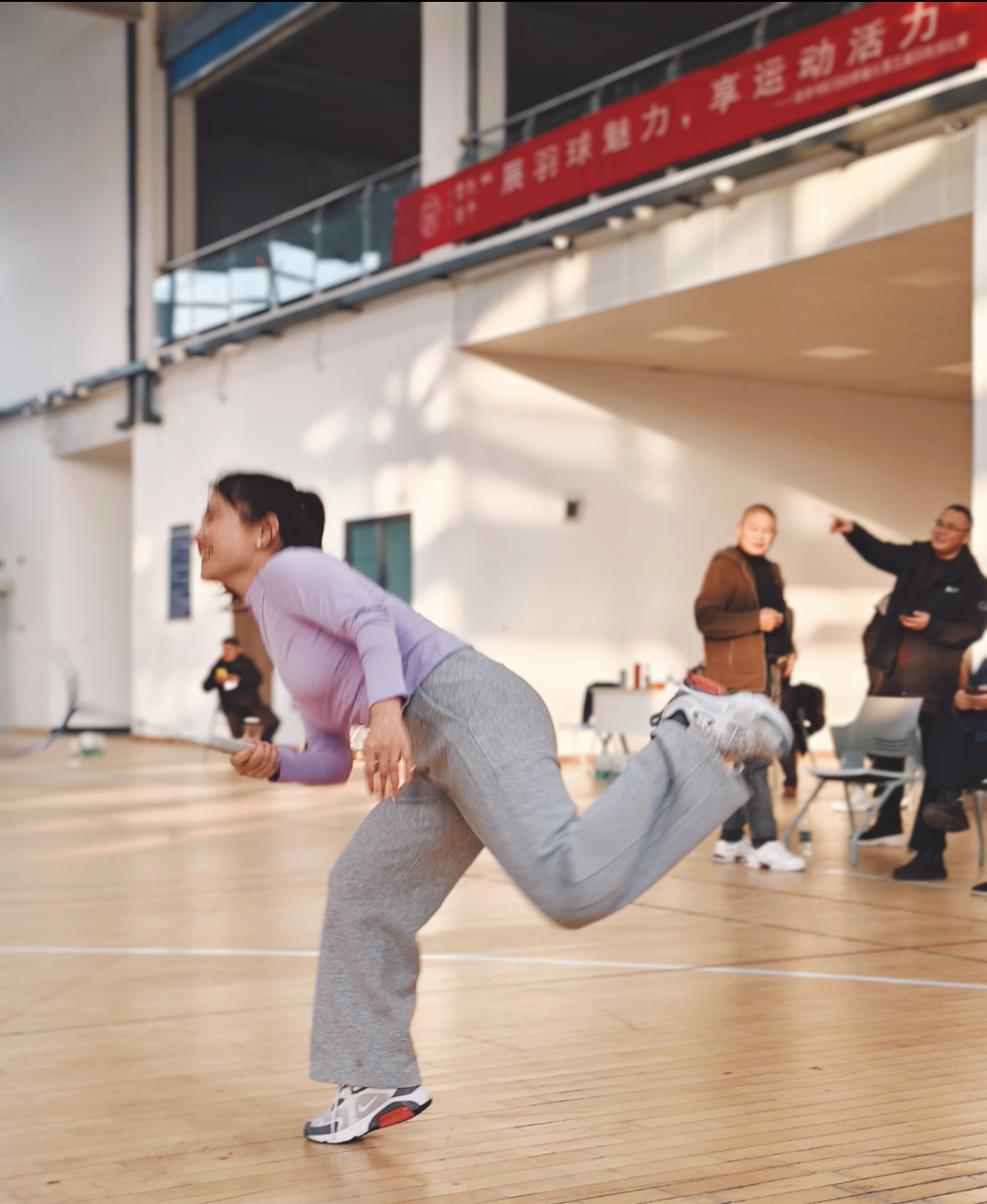 下午三點,室內羽毛球公開賽“鳴鑼開戰”。很快,男女混打,兩兩對訣,眨眼睛間進入比賽。雙方爭先恐后,勢均相當。